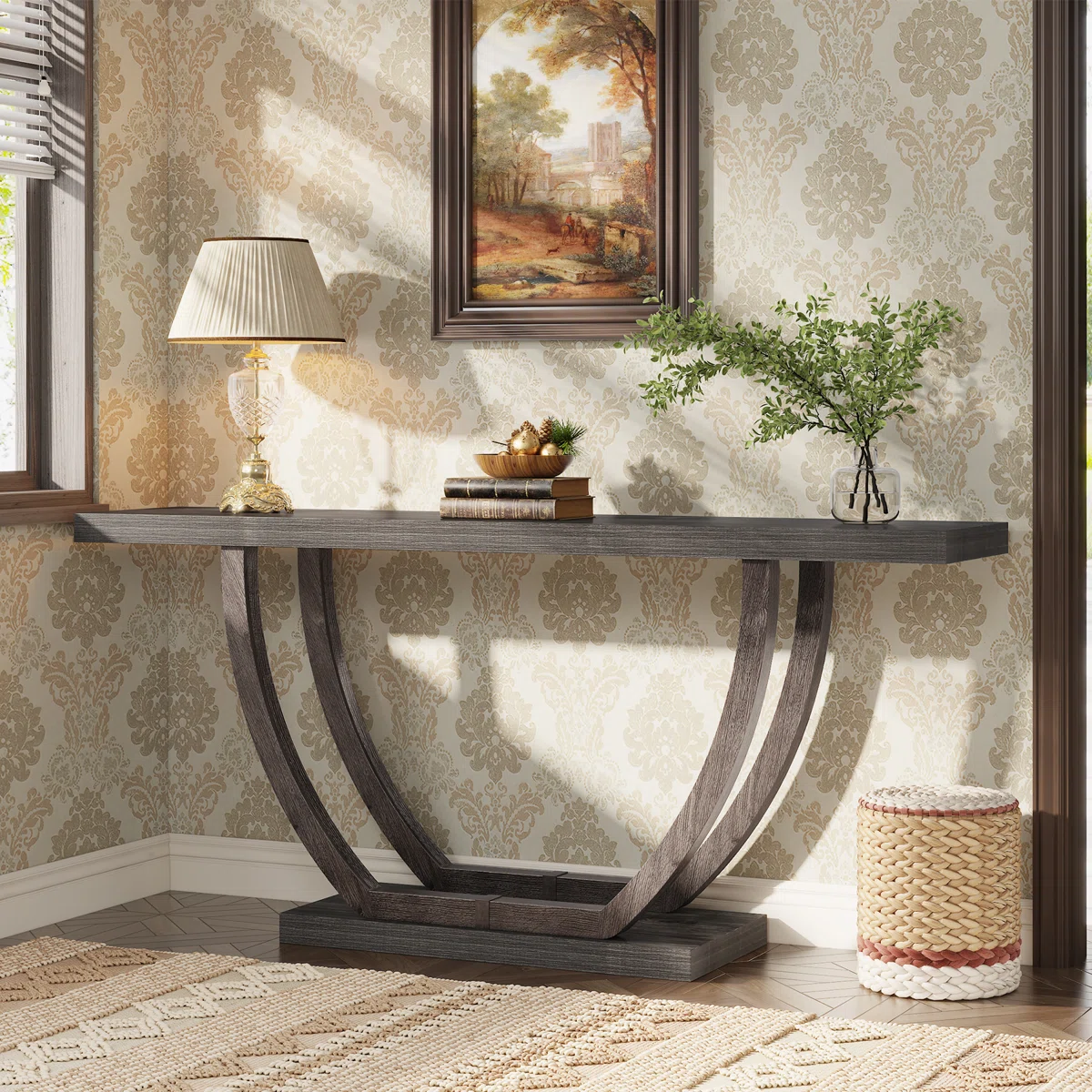 Add charm and functionality to any space with this 160 cm console table. Made from manufactured wood with a natural finish, it features a distinctive U-shaped base and a spacious rectangular top for décor, books, or lamps. Perfect as a console, sofa, or hallway table, it blends rustic elegance with practical design.