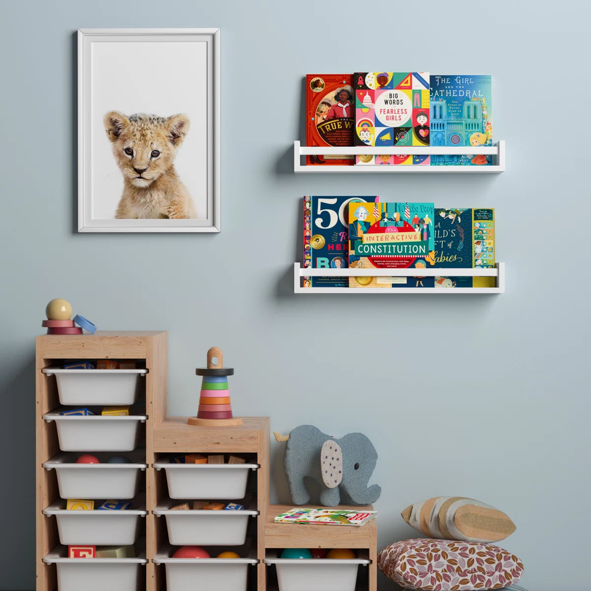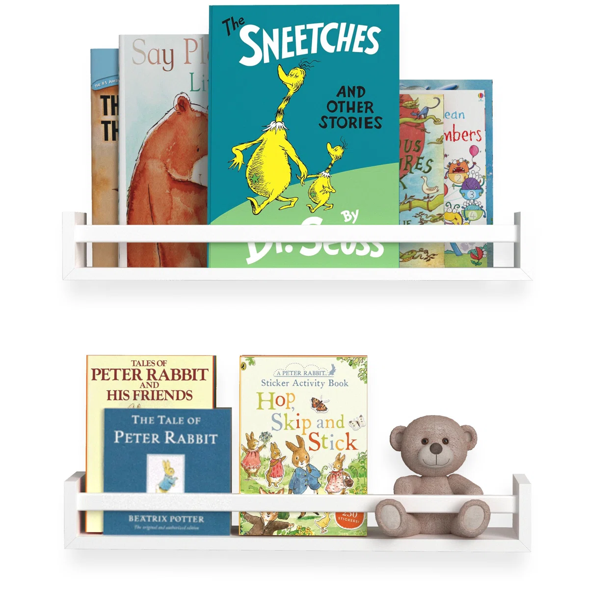 Organize and display your child’s toys, coloring books, novels, and decorative items with these practical floating shelves. This wall shelf set helps you create both functional and stylish decor for any kids’ room or nursery.