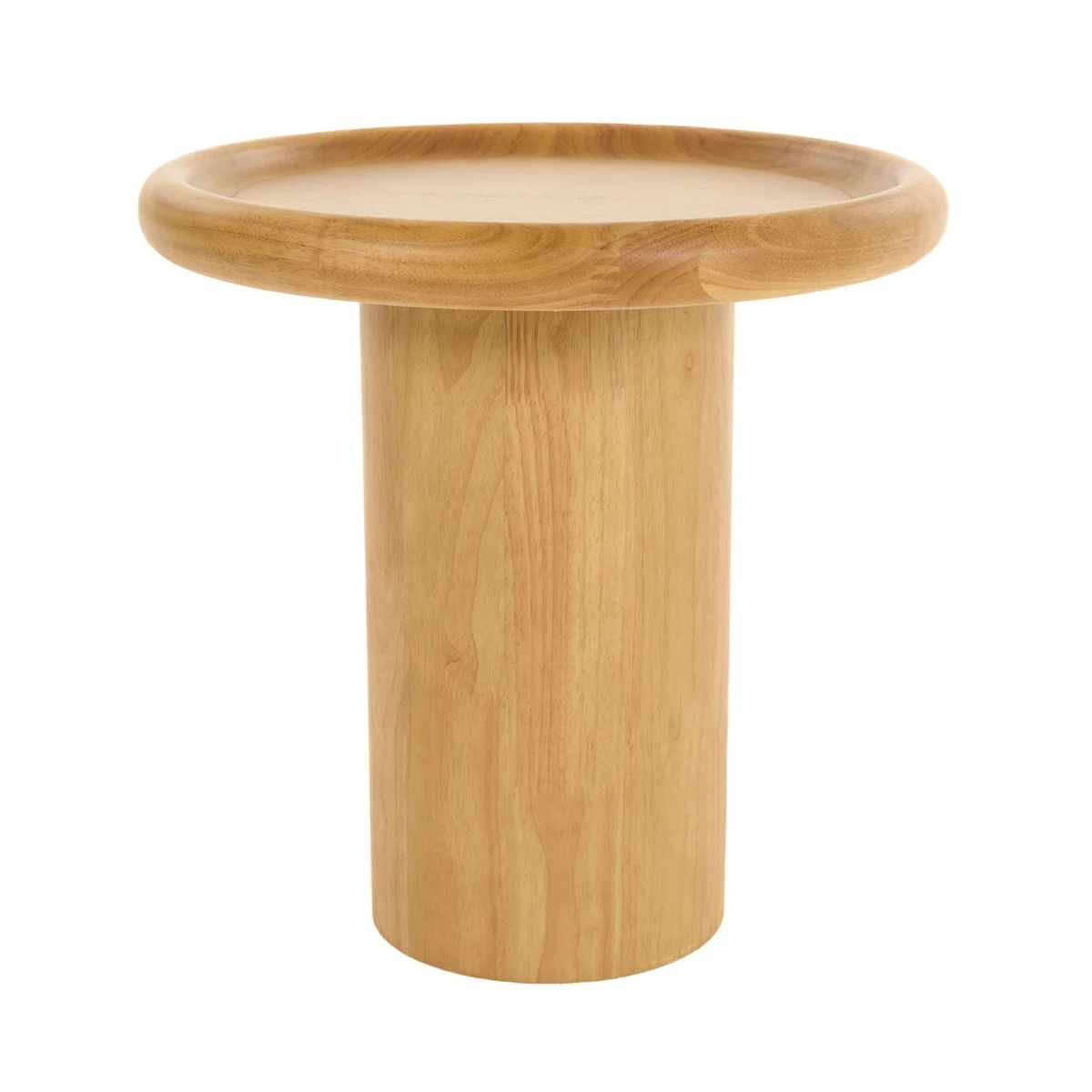 Bring a sleek and contemporary flair to your living space with this elegant end table. The round top features a soft concave edge that adds subtle sophistication, while the warm natural brown finish beautifully complements various decor styles.