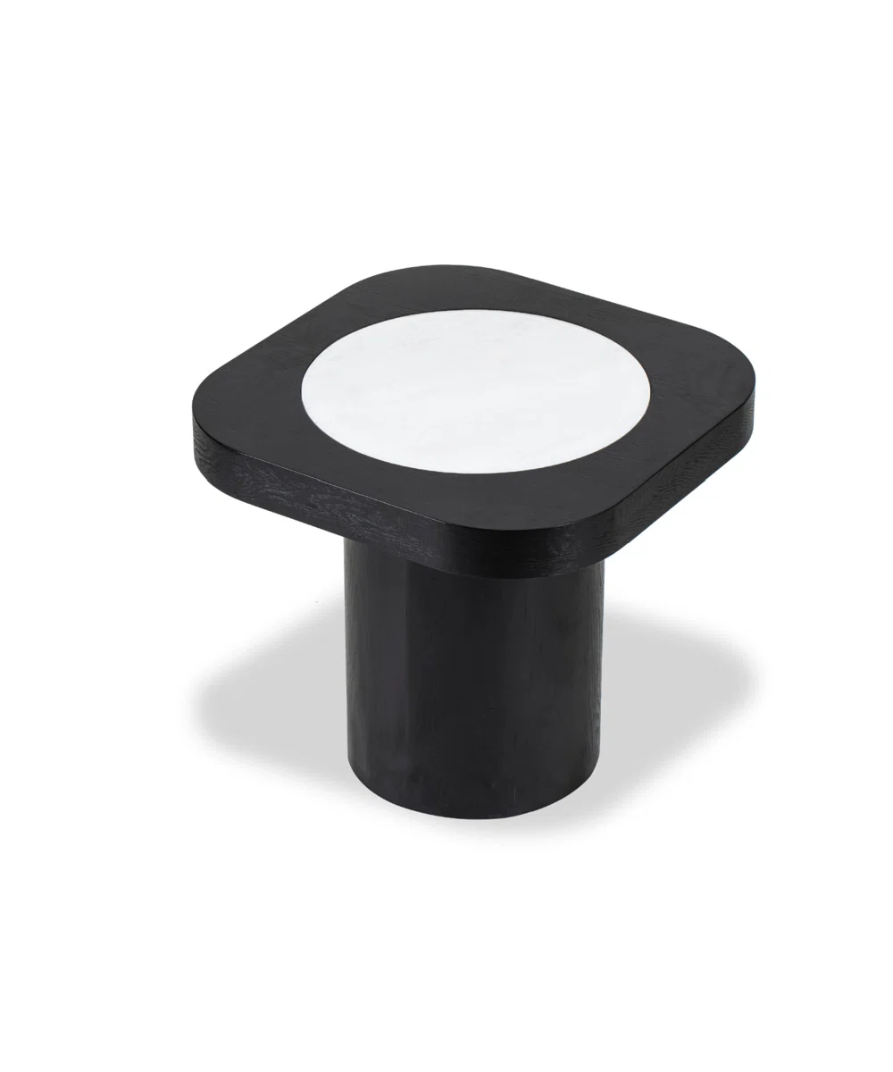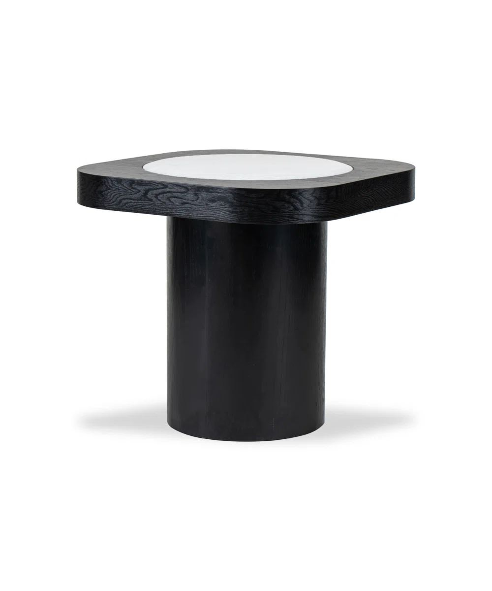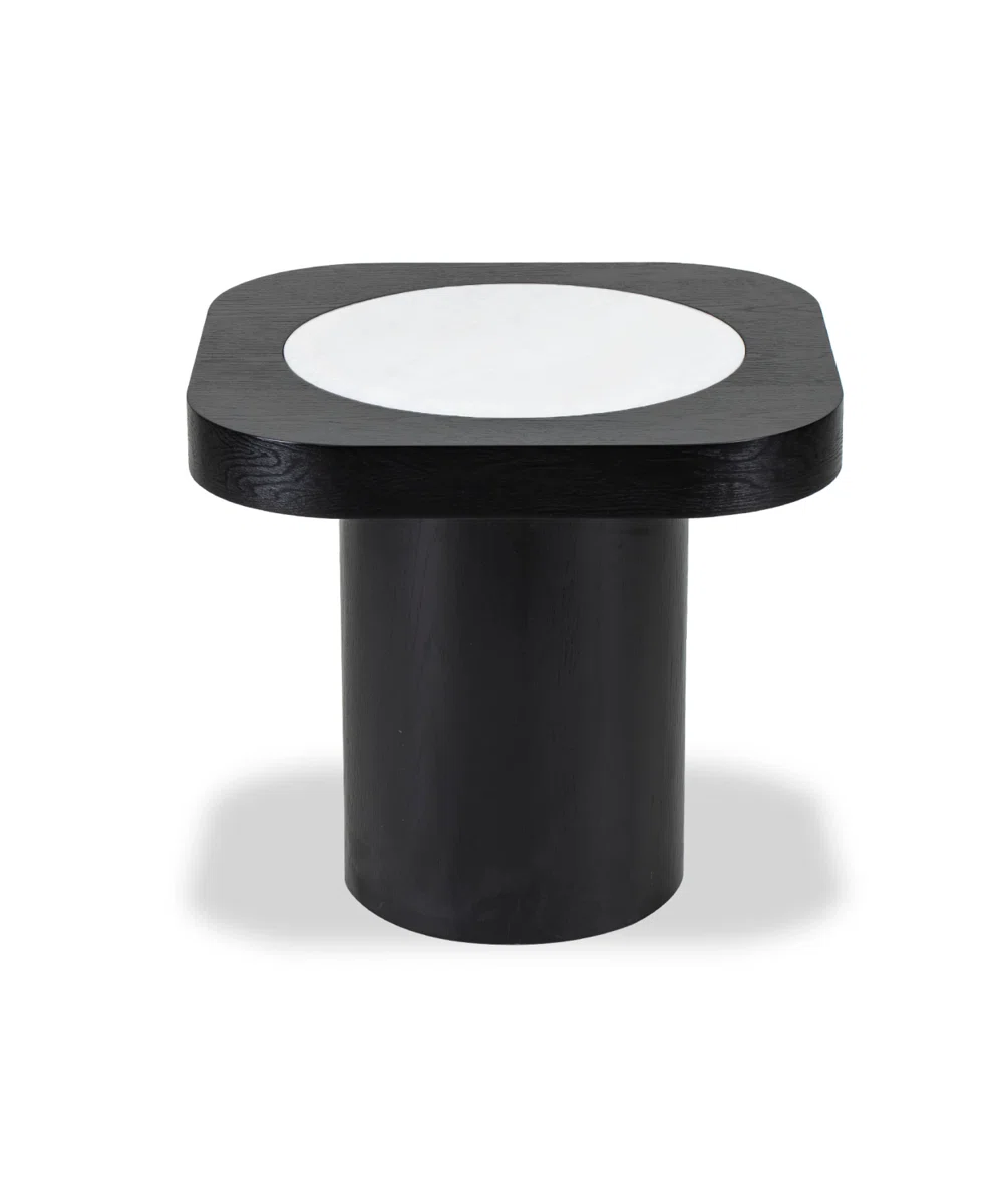 Designed for sleek modernity, this stunning side table creates an attractive aesthetic that elevates any contemporary living space. The luxurious combination of a circular white marble center with a sophisticated black ash Manufactured Wood surround creates a captivating visual contrast.