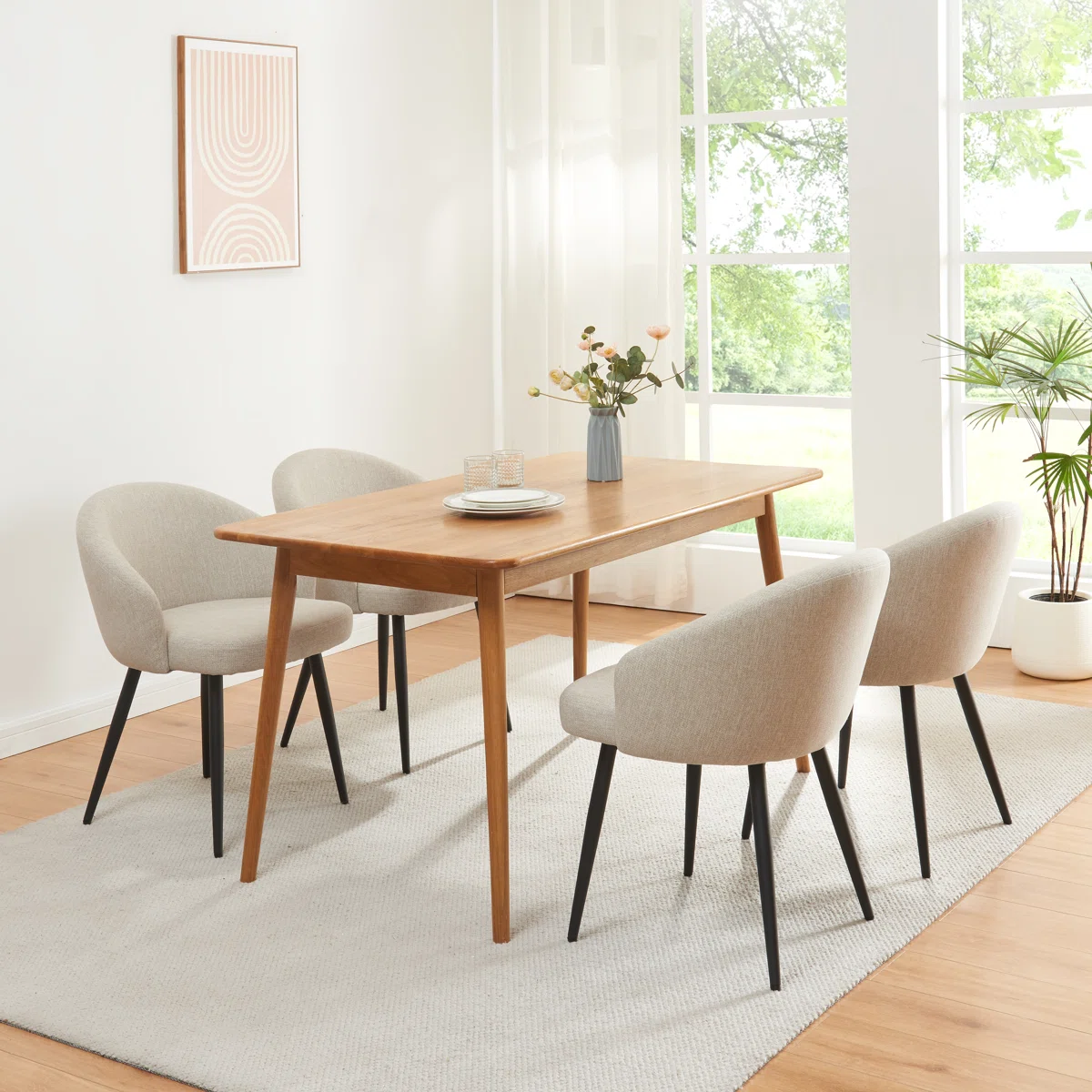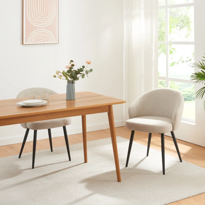 Stylish dining chairs with plush cushions and sturdy metal legs. Perfect for dining areas and home offices.